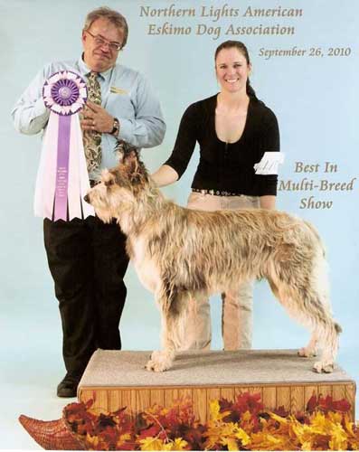 Emmet won three Best of Breed, 2 Group IIs and a Group I and Reserve Best in Multi-Breed Show at UKC shows in Gilbert, MN on October 15-16, 2011.
